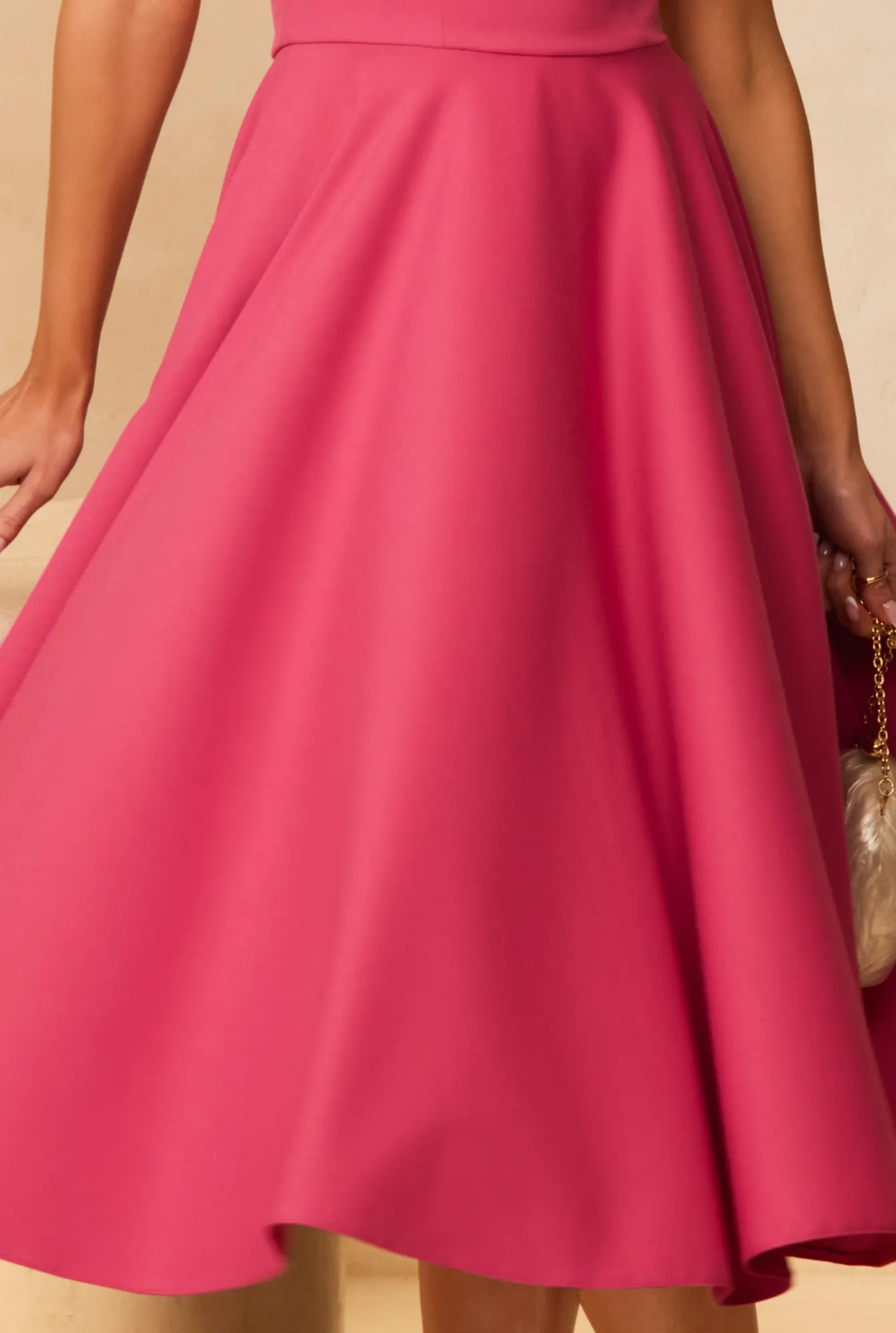 Das Kleid Albena ist ein elegantes Midi mit einer dezenten Bindung am Hals und einem ausgestellten Rock, der sich bei Bewegung wunderschön entfaltet. Gefertigt aus mattem, glattem und leicht dehnbarem Stoff, bietet es hohen Tragekomfort und Bewegungsfreiheit. Seitentaschen sorgen für Funktionalität und unterstreichen den minimalistischen Charakter des Schnitts. Knopf- und Reißverschluss gewährleisten eine bequeme Passform. Das Modell ist nur im oberen Bereich gefüttert, und das Futter besteht aus dem gleichen Stoff wie das Obermaterial. Albena ist ein Kleid, in dem Sie sich stilvoll und entspannt fühlen – zu jedem Anlass.