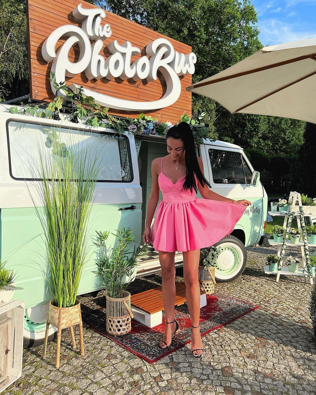 Ich war in diesem Kleid schon auf zwei Hochzeiten. Es hat immer Eindruck gemacht. Die Farbe ist einfach unglaublich, einzigartig. Ich habe noch nie einen solchen Rosaton an jemandem gesehen. Das Material ist edel wie immer.