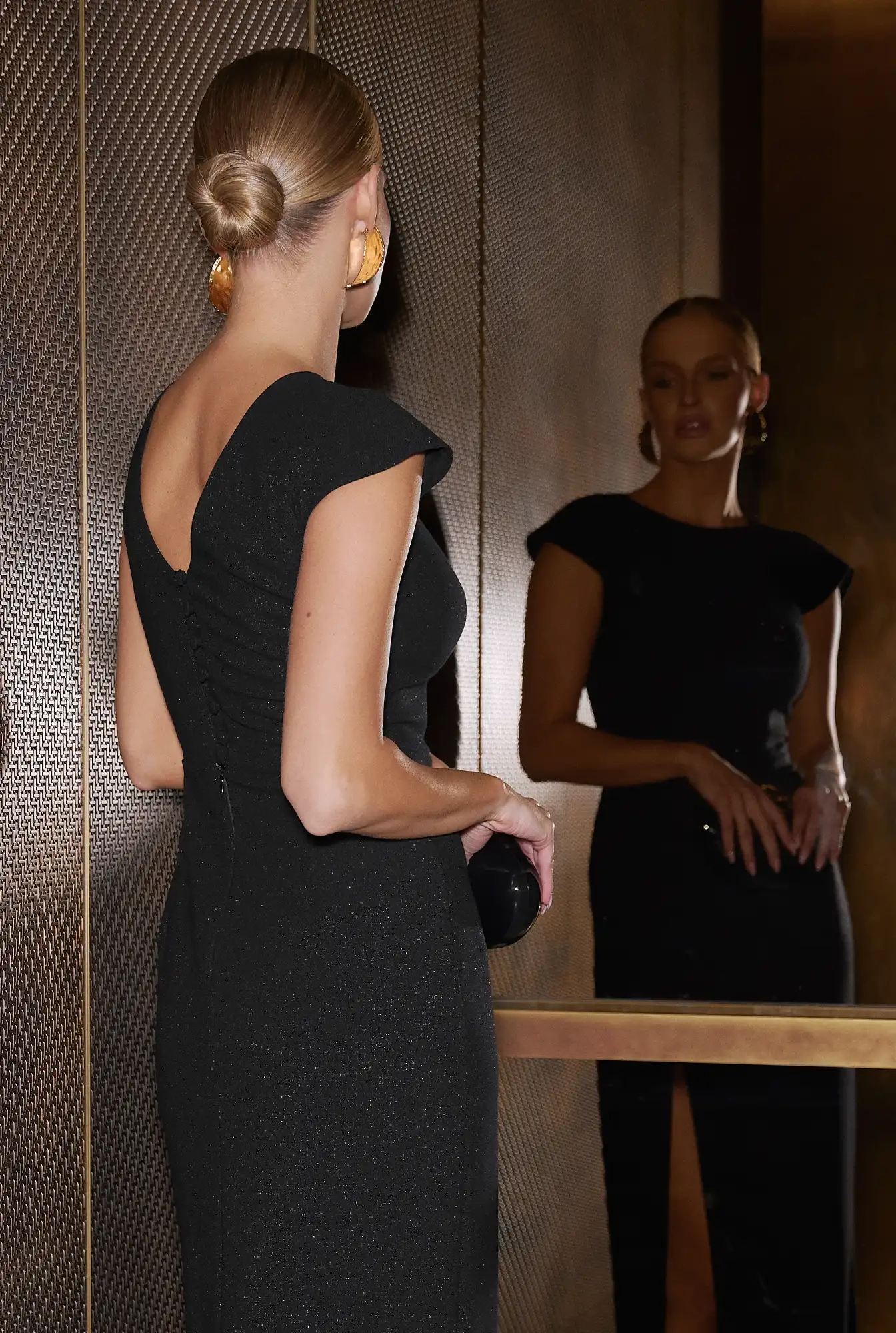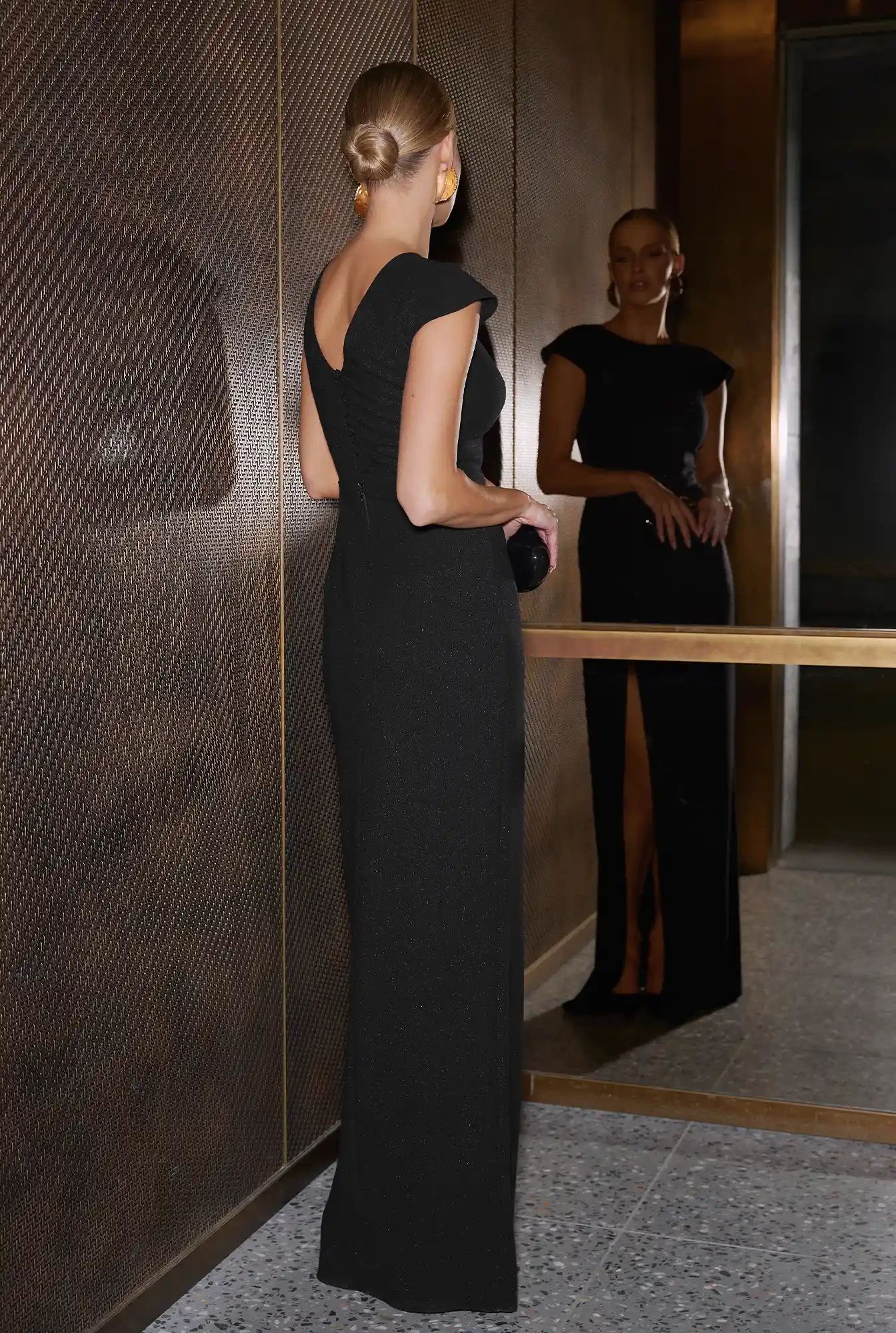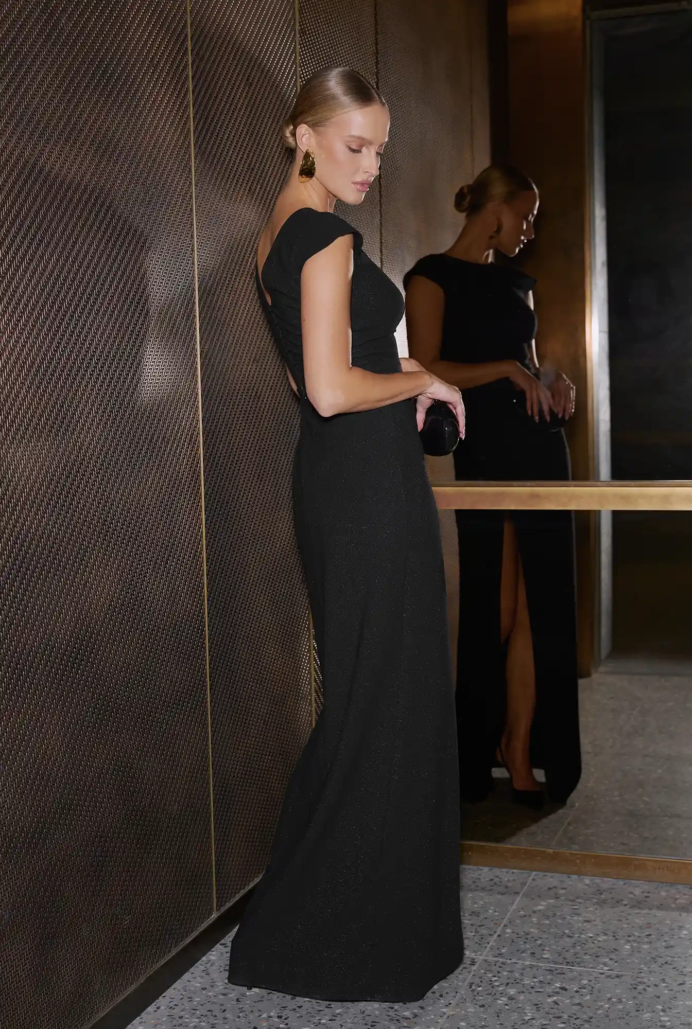 Kasjana – schwarzes Maxi mit zartem Silberfaden