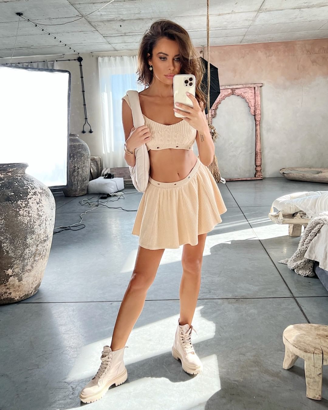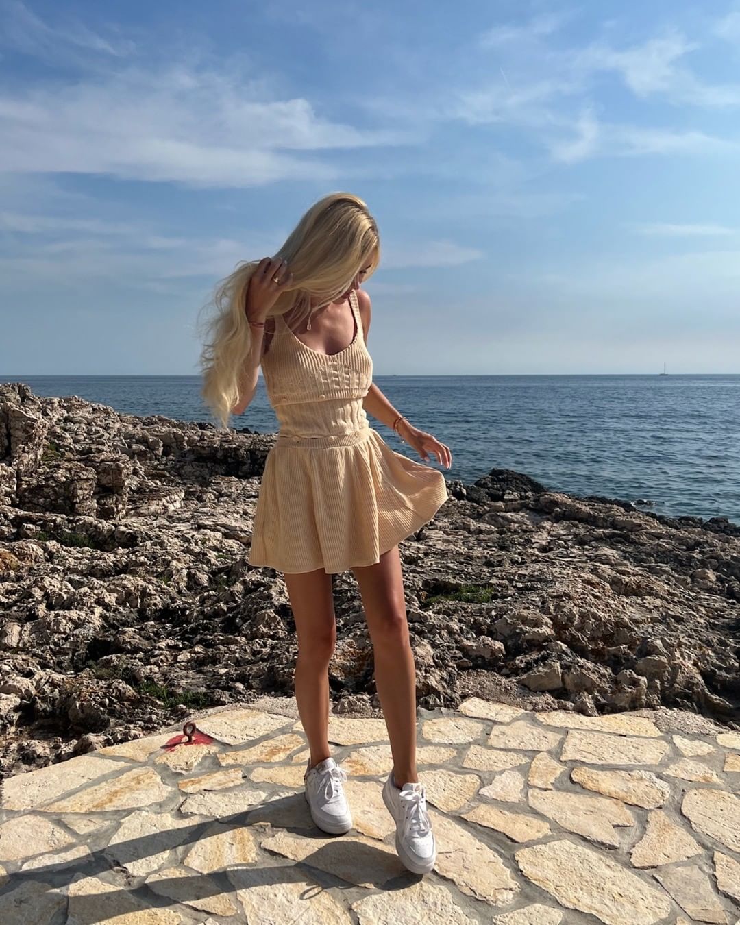 Das ist genau das Kleid, das ich für meine Urlaubsreise brauchte. Es kann als Ganzes oder als separate Kombination aus Oberteil und Rock getragen werden. Und der clevere Zusatz eines Kordelzugs, den ich anstelle der Knopflöcher am Rock angebracht habe, ist ein absoluter Hit. Das gab mir Stabilität und einen perfekten Sitz auf Taillenhöhe. Diese Lösung habe ich auch bei der Kombination von Ober- und Unterteil verwendet. Die Größe entspricht der, die ich jeden Tag trage. Ich empfehle