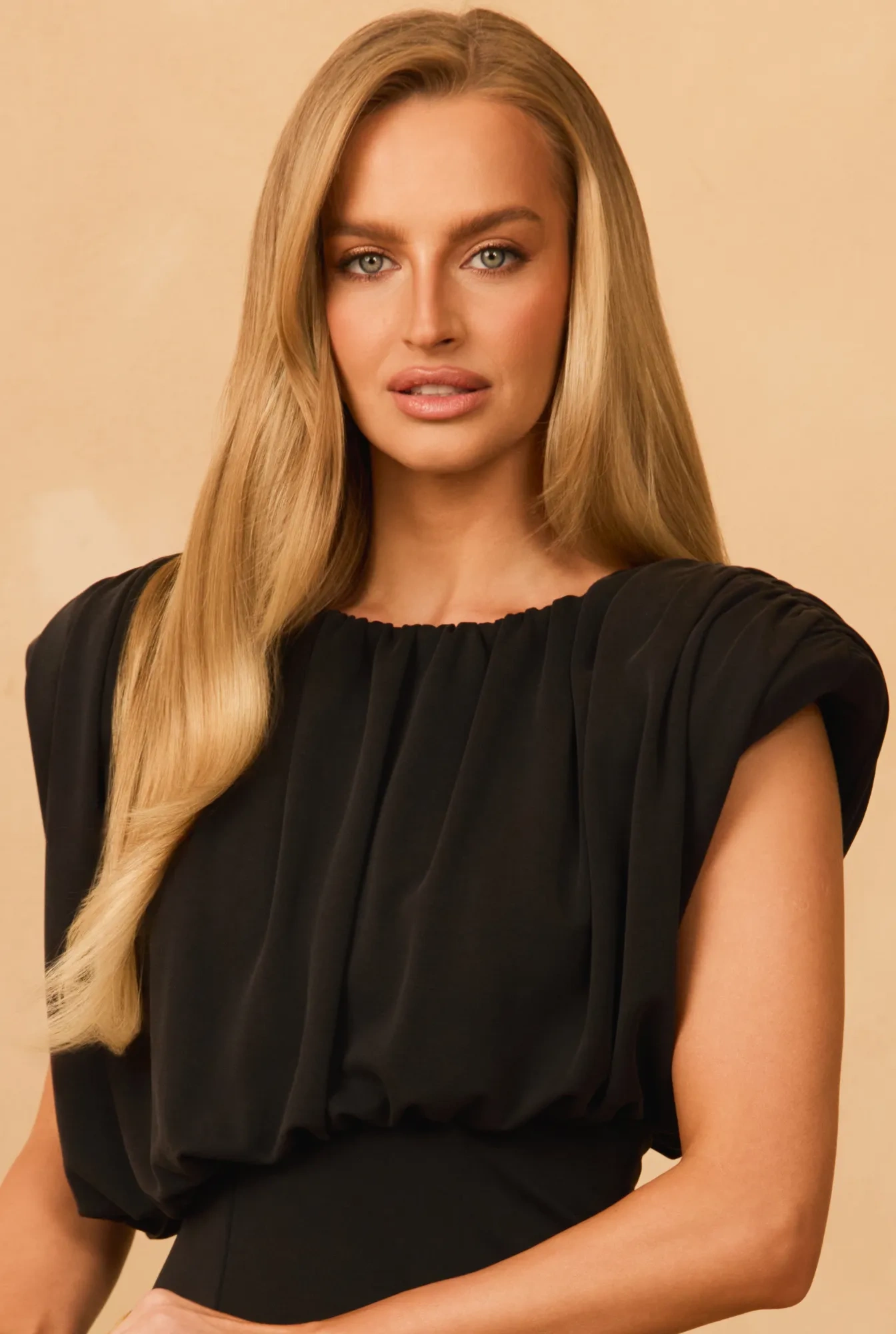 Das Maruxa-Kleid ist ein modernes Mini, bei dem das lockere asymmetrische Oberteil im Kontrast zum eng anliegenden Rockteil steht und die Silhouette bei maximalem Komfort betont. Hergestellt aus dünnem, leicht dehnbarem, mattem Stoff mit Modalanteil, weich und angenehm auf der Haut, liegt es perfekt am Körper. Eingenähte Schulterpolster verleihen Struktur, Reißverschluss und Knöpfe sorgen für Bequemlichkeit. Modell ideal für elegante Anlässe.