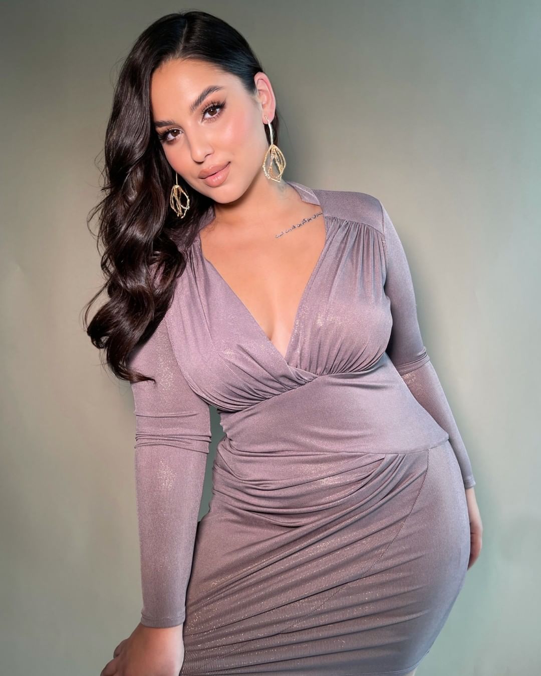 Wunderschönes Kleid aus weichem, glänzendem Stretch-Stoff, der sich der Figur anpasst. Die Falten maskieren Unvollkommenheiten, die Größe ist wie beschrieben. Obwohl ich eine Größe XL trage, sieht das Kleid wunderschön aus.
