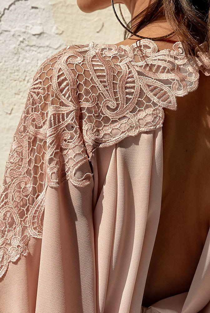 The back of the Campbell embroidered pink dress is composed of a crinkle skirt and a deep neckline surrounded by the smooth fabric. Regardless of the event for which you choose this outfit, going out in the Campbell dress will make you look like a million dollars. Check out other newest products offered by LOU and feel unique in one of our dresses!