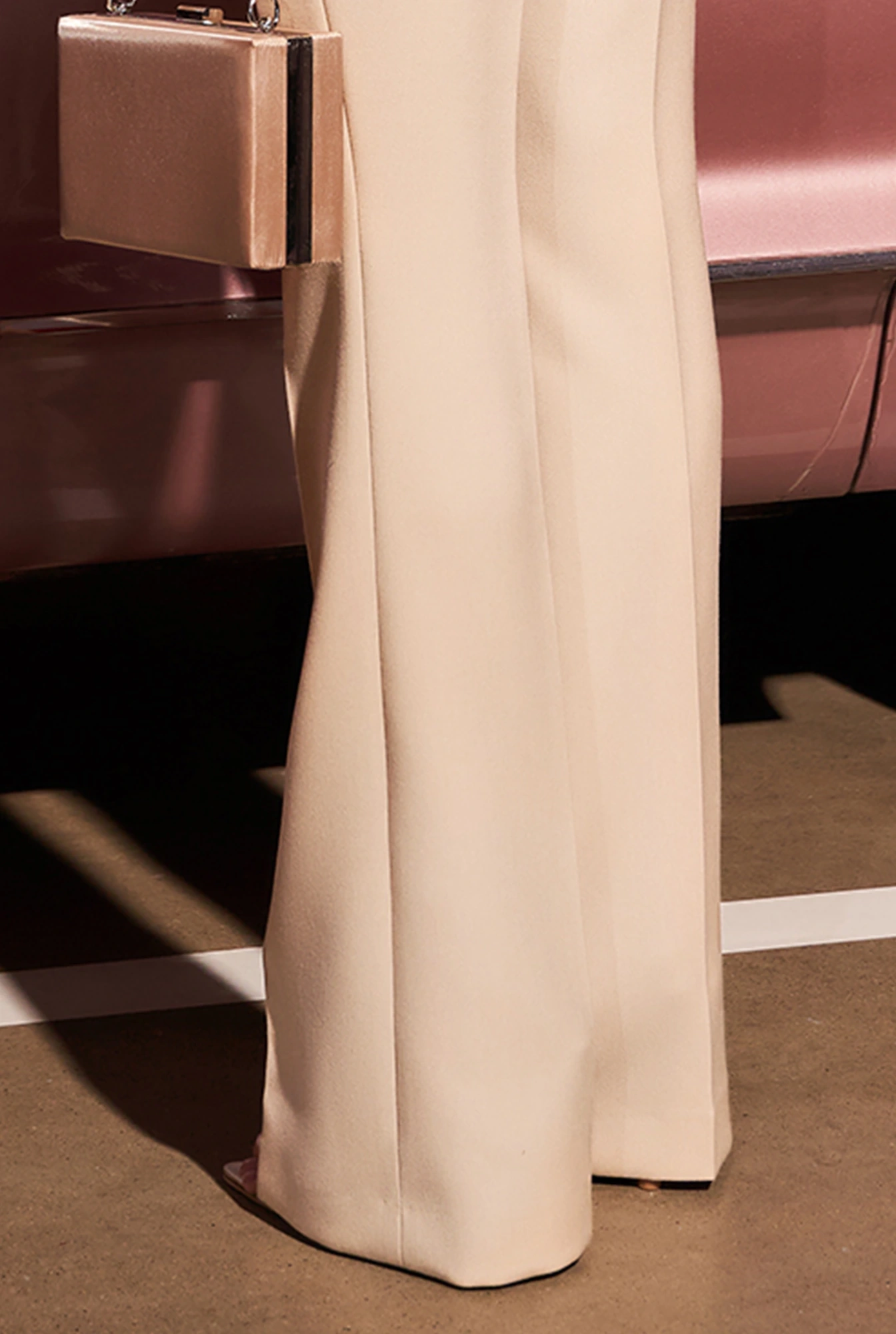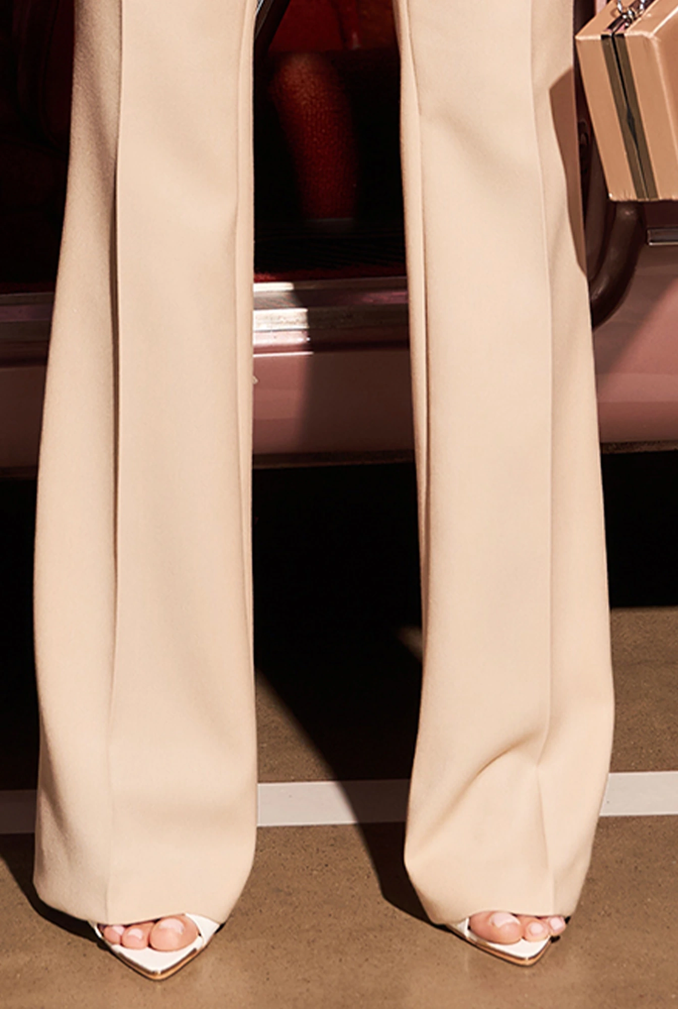 • Beige pants made of fabric with viscose in the composition. The high-waisted and leg-lengthening cut makes a perfect set with the Luisa jacket and top.