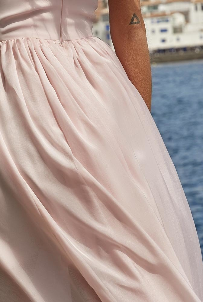 One of our latest newcomers - the beautiful maxi Reggia dress in the shades of fashionable powder pink. Perfect for evening outings, weddings, proms and other notable events. It wonderfully fits the silhouette, therefore you need to prepare for feeling extremely attractive!